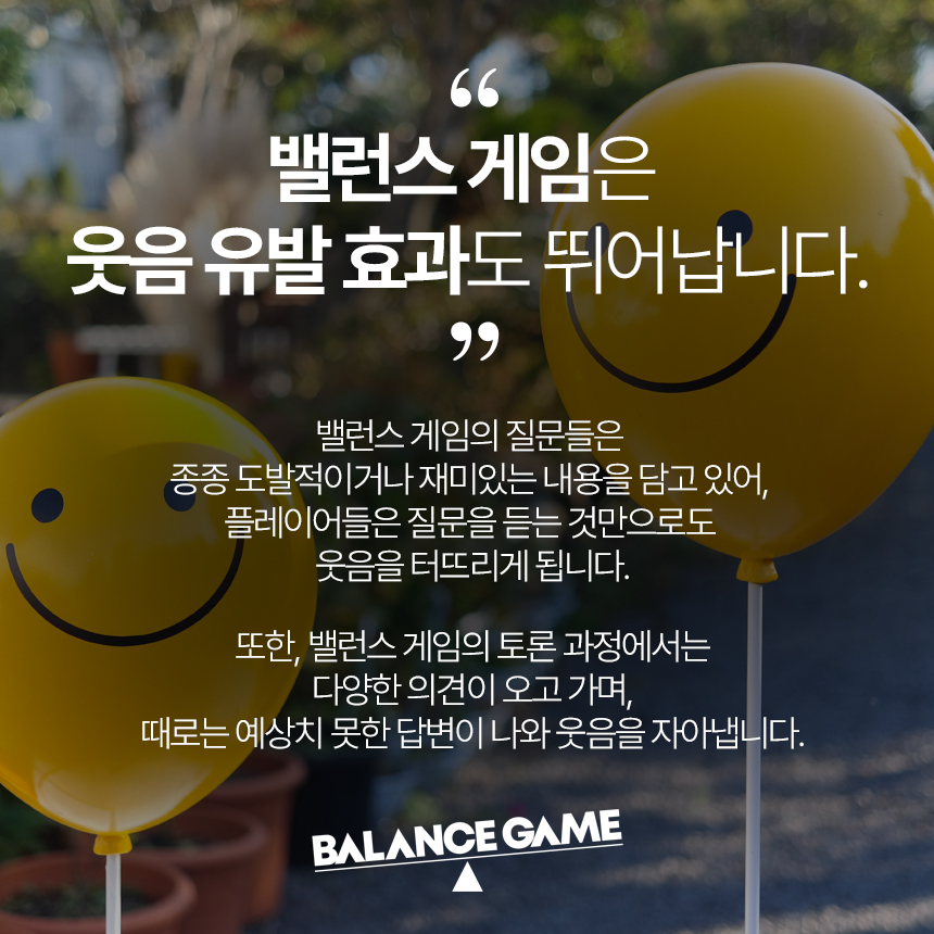 밸런스 게임은 웃음 유발 효과도 뛰어납니다.